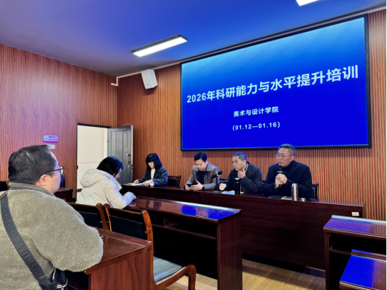 本网讯(通讯员:万浩)2026年1月12日至16日,为加强学院科研梯队建设,切实提升青年教师科研素养与项目申报能力,美术与设计学院面向45岁(含)以下青年教师组织开展了为期五天的科研能力提升集中培训。本次培训围绕高层次科研项目申报与高水平学术成果产出,通过专题讲授、实操指导与专家面对面辅导相结合的方式,系统助力青年教师科研成长。