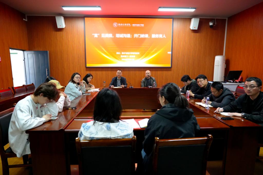 本网讯(通讯员:管悦)为深入贯彻“以学生为中心”的服务理念,切实解决学生在寝室生活中遇到的“急难愁盼”问题,美术与设计学院于4月16日中午在艺术楼A320活动室举办“寓”见美院,坦诚沟通;开门纳谏,服务育人暨安全主题教育活动。本次活动由美术与设计学院党总支与机关第十一党支部联合举办,旨在通过座谈会与实地排查相结合的方式,邀请后勤相关部门走进学院、走近学生,搭建面对面的沟通平台,着力提升后勤服务质量与学生满意度,共建安全、舒适的宿舍环境。学院党总支书记文志勇、党总支副书记彭婷、学工办主任管悦及30名学生代表参会,后勤相关部门负责人应邀出席。活动由党总支副书记彭婷主持。