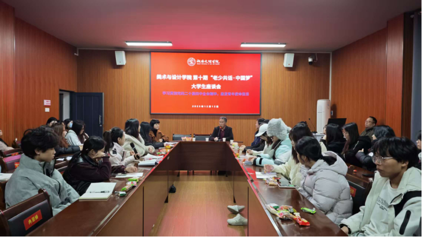 为深入贯彻教育部党组关于加强新时代关心下一代工作的精神,落实立德树人根本任务,充分发挥“五老”优势,促进代际交流与思想引领,12月12日,美术与设计学院和离退处第一党支部共同举办第十期“老少共话·中国梦”座谈会。本期活动主讲老师为离退处第一党支部党员余清明老师,围绕“领悟党的二十届四中全会精神,探寻成功人生密码”主题,与青年学子展开交流。